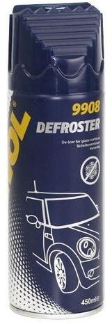 A Mannol Defroster terméke biztosítja a hatékony és gyors jégoldást a jármű szélvédőjén, megkönnyíti a jég eltávolítást, illetve megakadályozza annak újbóli kialakulását. A termék gondoskodik, hogy a vezető jól és tisztán kiláthasson a szélvédőn, ezáltal növeli a közlekedési biztonságot. A hosszadalmasan elnyúló belső fűtés – annak érdekében, hogy az ablakokról felolvadjon a jég – szükségtelenné válik a termék használatával. A Defroster termék fényszórók, zárak, autóajtók, csomagtartó ajtók, ablaktörlő lapátok kiolvasztására is alkalmazható.